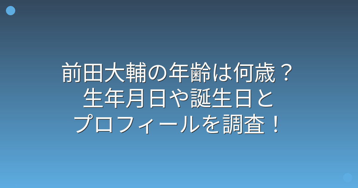 前田大輔の年齢は何歳?生年月日や誕生日とプロフィールを調査!