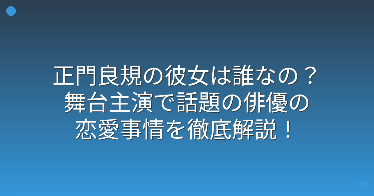 正門良規の彼女は誰なの?舞台主演で話題の俳優の恋愛事情を徹底解説!