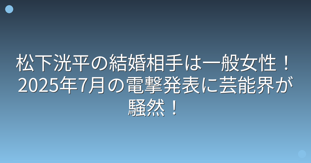 2025年7月27日に電撃結婚を発表した松下さんですが、結婚相手は一般女性であり、詳細な情報は明かされていません。