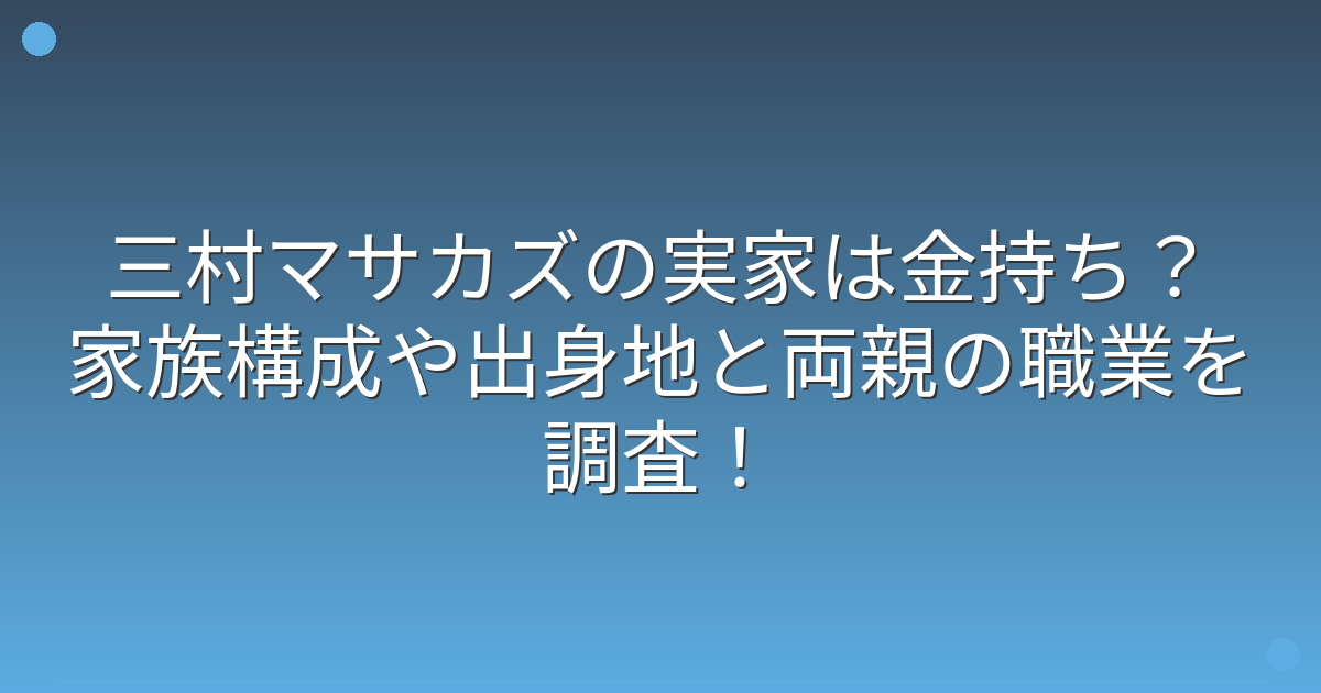 複数の報道によると、三村マサカズさんの実家は一般的な家庭であり、特別裕福な家庭ではなかったと言われています。