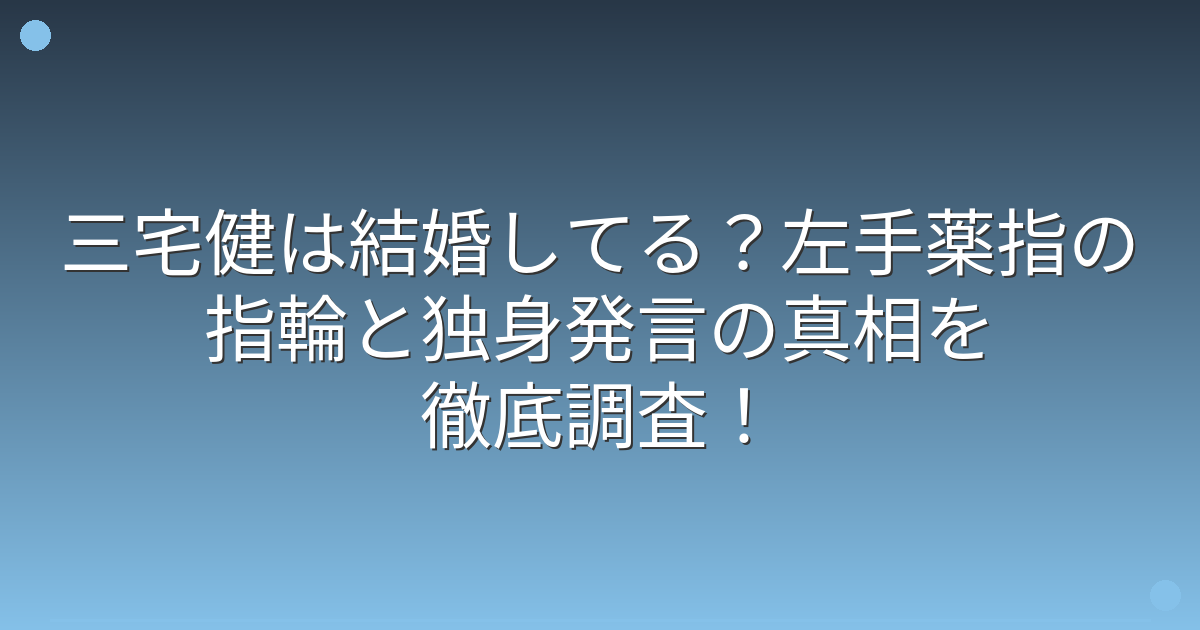 三宅健は結婚してる?左手薬指の指輪と独身発言の真相を徹底調査!
