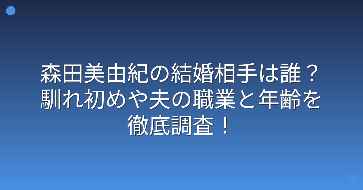 そこで今回は、森田美由紀さんの結婚相手は誰なのか、馴れ初めや夫の職業、年齢などについて詳しく見ていきましょう!