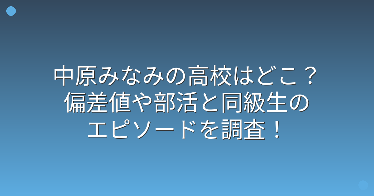 今回は、中原みなみさんの出身高校や偏差値、部活動、同級生とのエピソードについてお伝えしてきました。