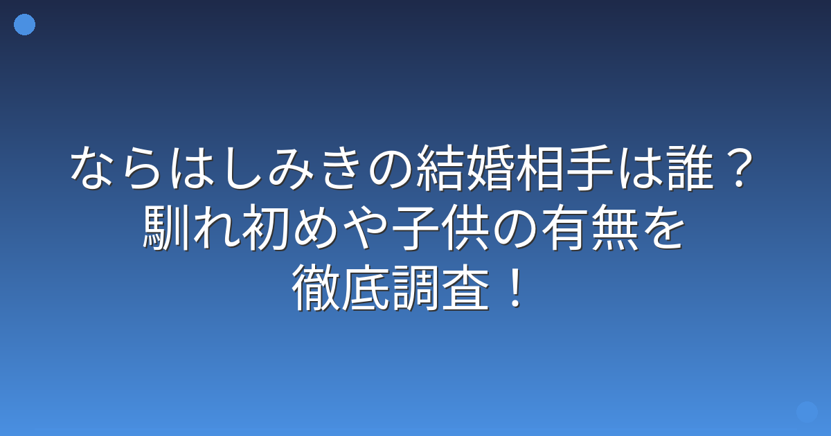 そこで今回は、ならはしみきさんの結婚相手や馴れ初め、子供の有無について詳しく見ていきましょう!
