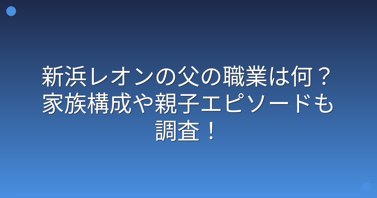 新浜レオンさんの父親はどんな人物なのか、職業や家族構成について気になっている方も多いのではないでしょうか。
