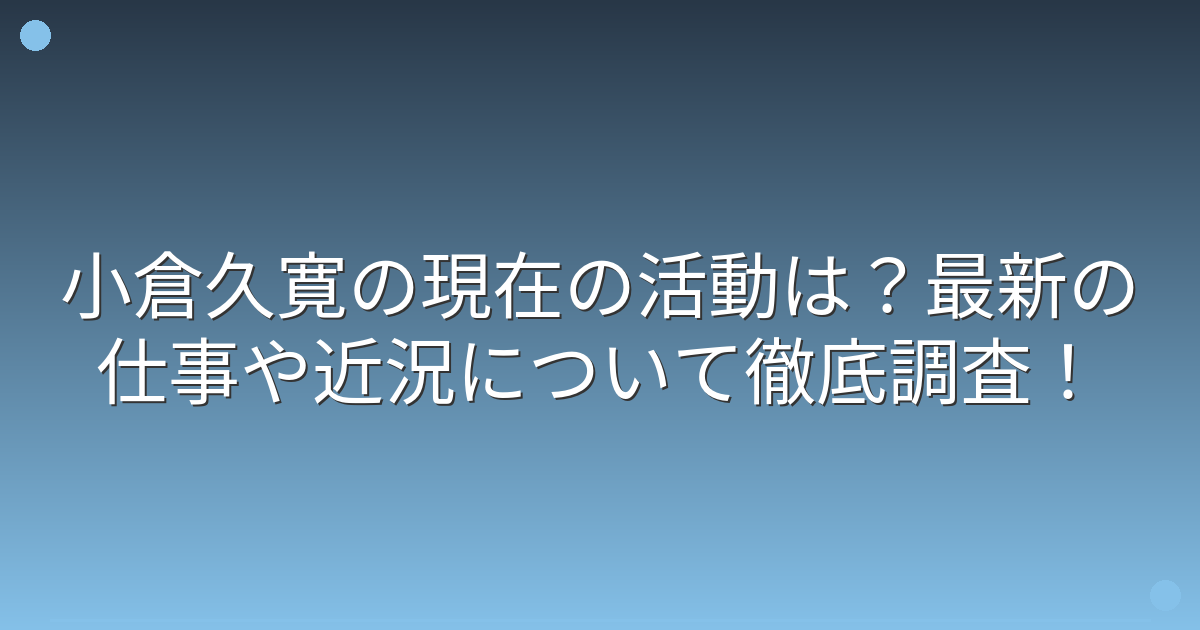 そこで今回は、小倉久寛さんの現在の活動や最新の仕事、近況について詳しく見ていきましょう!