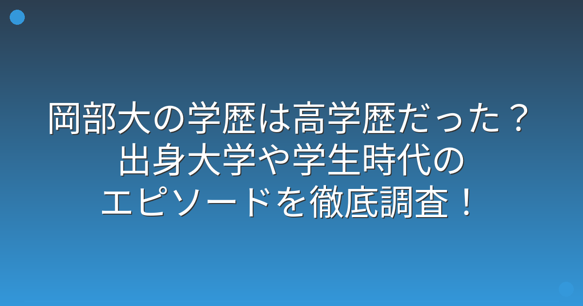多くの視聴者が気になっているのが、岡部大さんの出身大学や最終学歴についてです。