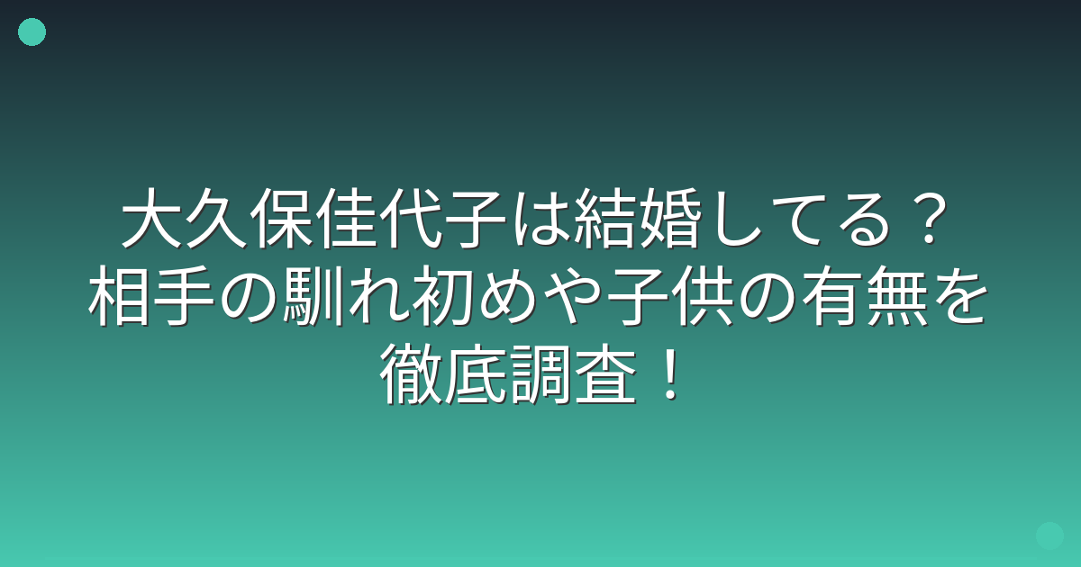 複数の報道によると、大久保佳代子さんは独身のままで、現在も結婚相手はいないとされています。
