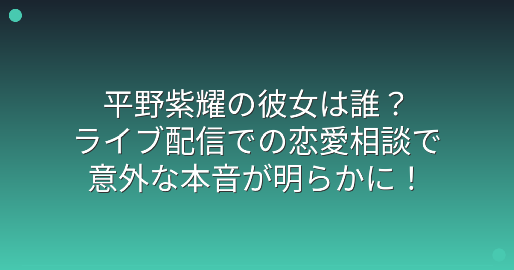 平野紫耀の彼女は誰?ライブ配信での恋愛相談で意外な本音が明らかに!