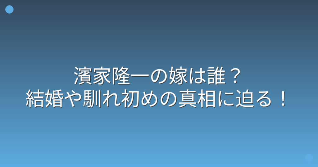 濱家隆一の嫁は誰?結婚や馴れ初めの真相に迫る!