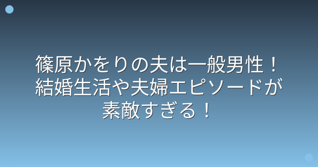 人気女優の篠原かをりさんの結婚生活が、最近話題を集めています。 特に、一般男性である旦那様とのエピソードが素敵だと、ファンの間で注目を集めているようです。 そこで今回は、篠原かをりさんの夫について、結婚生活や夫婦エピソードを詳しく見ていき... -