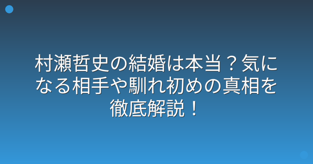 村瀬哲史の結婚は本当?気になる相手や馴れ初めの真相を徹底解説!