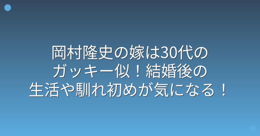 お笑い芸人のナインティナインの岡村隆史さんの結婚が、今でも大きな話題となっていますね。 2020年に結婚を発表した岡村さんですが、妻の素顔や結婚生活について、多くのファンが興味を持っているようです。 そこで今回は、岡村隆史さんの奥様について、... -