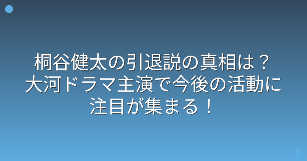 桐谷健太の引退説の真相は?大河ドラマ主演で今後の活動に注目が集まる!