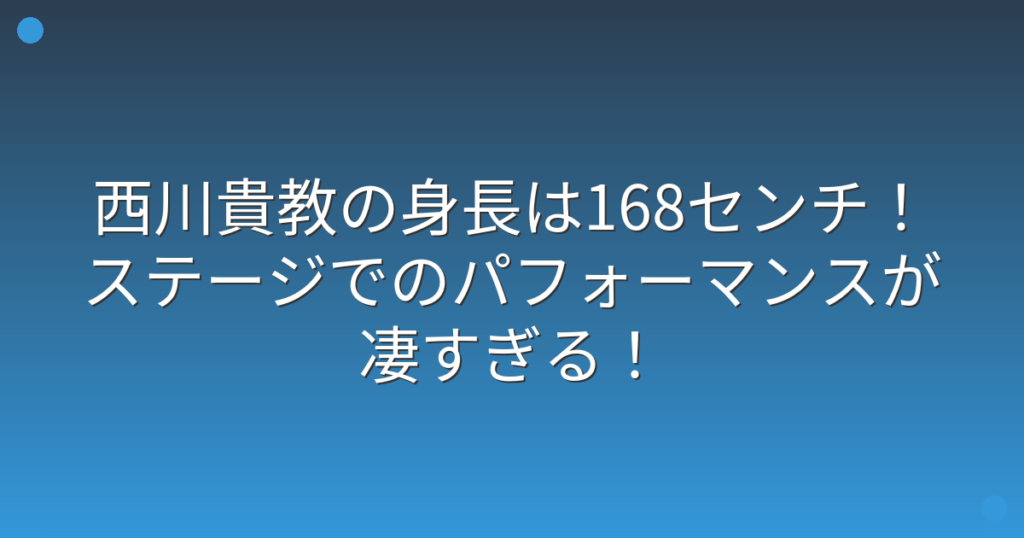 アーティストの西川貴教さんは、エネルギッシュなパフォーマンスと独特の歌声で知られています。 2025年にT.M.Revolutionデビュー30周年を迎え、全国ツアーで大きな話題を呼んでいます。 そこで今回は、西川貴教さんの身長や体格について、プロフィールや... -