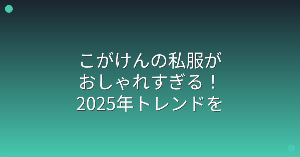 最近、お笑い芸人「こがけん」さんの私服コーディネートが話題を集めています。 特に2025年のトレンドを意識した着こなしに注目が集まっているようです。 そこで今回は、こがけんさんの私服スタイルについて、最新トレンドと合わせて詳しく見ていきましょ... -