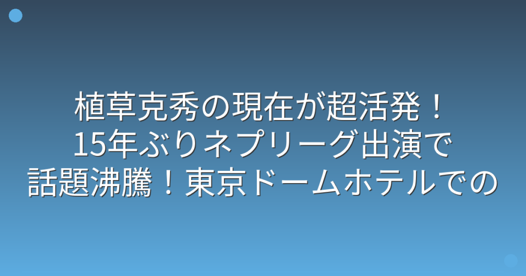 植草克秀の現在が超活発!15年ぶりネプリーグ出演で話題沸騰!東京ドームホテルでのコラボライブも決定?