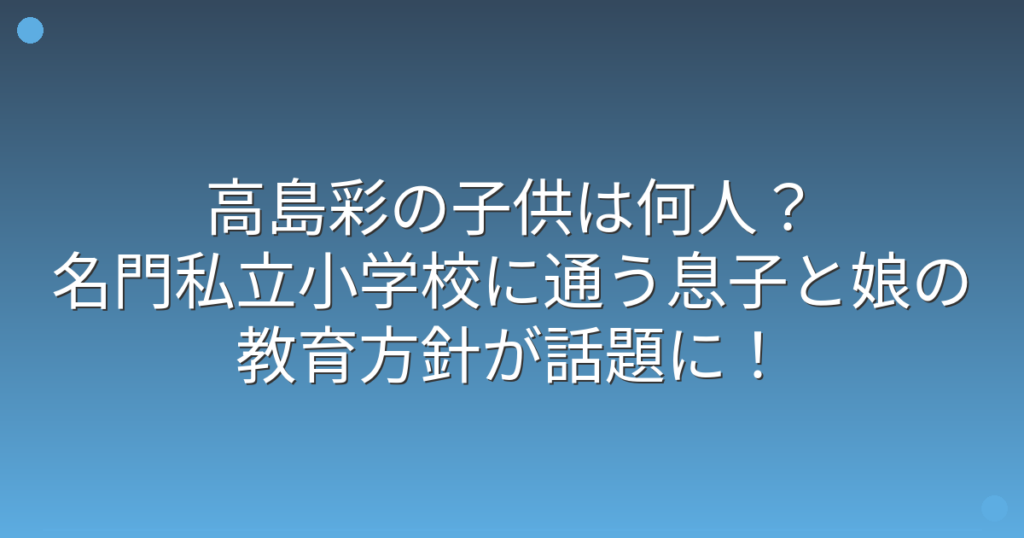 高島彩の子供は何人?名門私立小学校に通う息子と娘の教育方針が話題に!