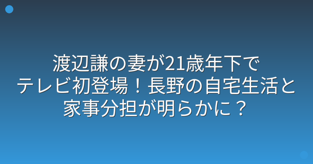俳優の渡辺謙さんが2025年11月9日に日本テレビ系「おしゃれクリップ」に出演し、2023年春に再々婚した21歳年下の妻がテレビ初取材に応じたことが大きな話題となっています。 これまでほとんどメディアに登場することがなかった妻の素顔や、長野での自宅生... -