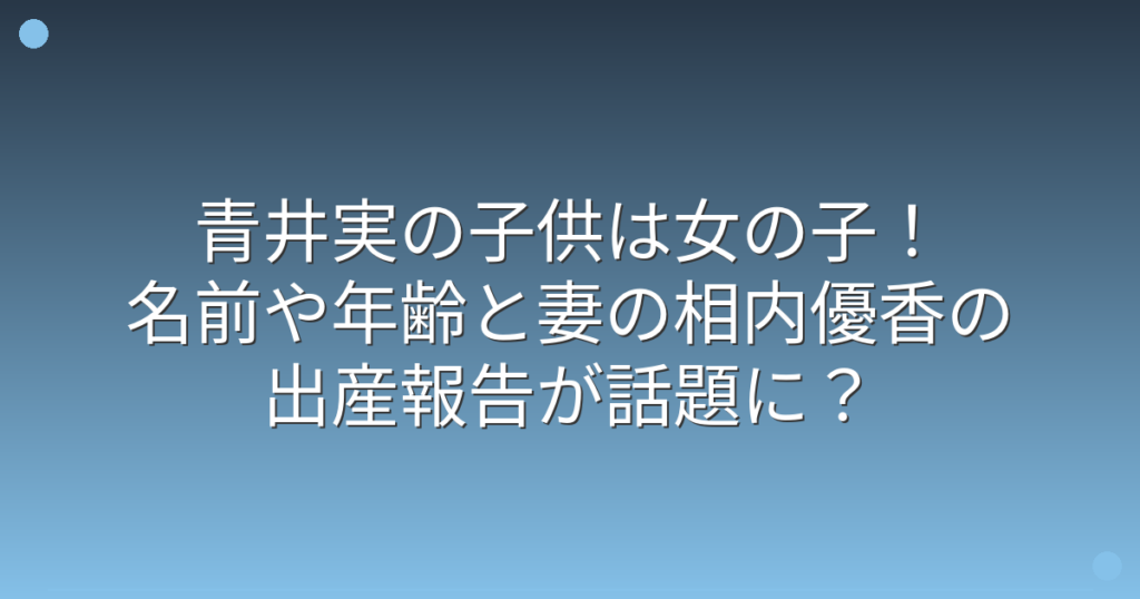 青井実の子供は女の子!名前や年齢と妻の相内優香の出産報告が話題に?