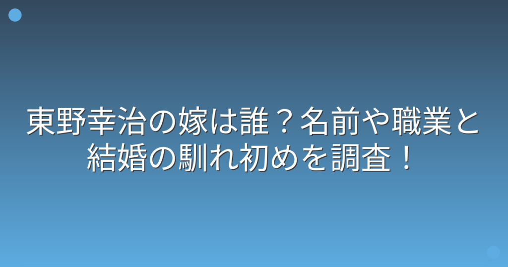 お笑いタレントとして長年第一線で活躍する東野幸治さんですが、プライベートについては謎に包まれています。特に嫁についてはほとんど情報が公開されておらず、名前や職業、結婚の馴れ初めなど、ファンの関心も非常に高いです。 今回は、東野幸治さんの嫁... -