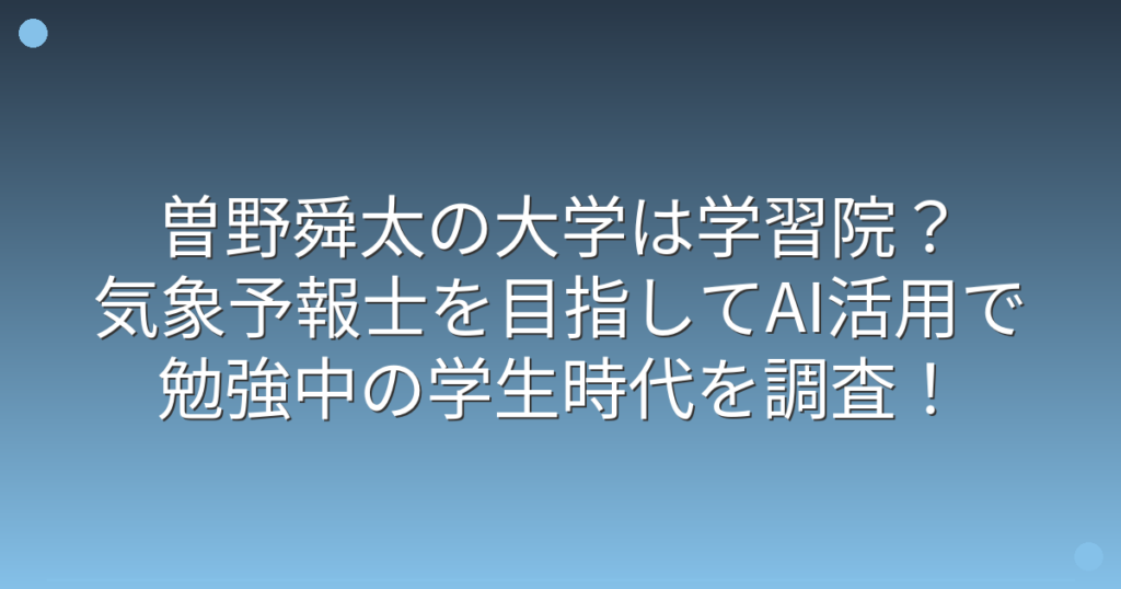 曽野舜太の大学は学習院?気象予報士を目指してAI活用で勉強中の学生時代を調査!