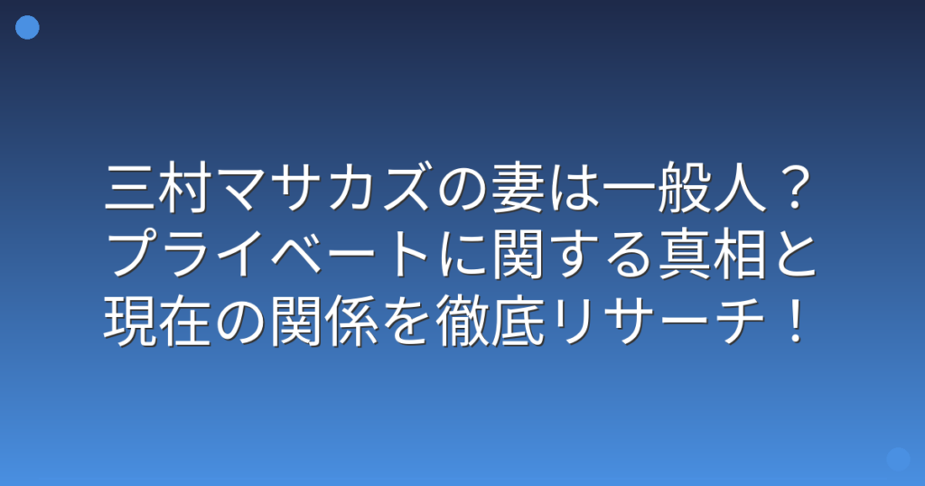 三村マサカズの妻は一般人?プライベートに関する真相と現在の関係を徹底リサーチ!