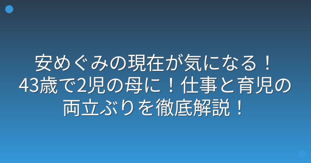 安めぐみの現在が気になる!43歳で2児の母に!仕事と育児の両立ぶりを徹底解説!