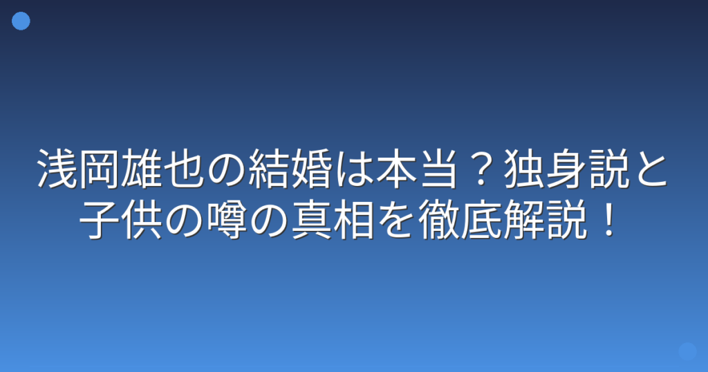 浅岡雄也の結婚は本当?独身説と子供の噂の真相を徹底解説!