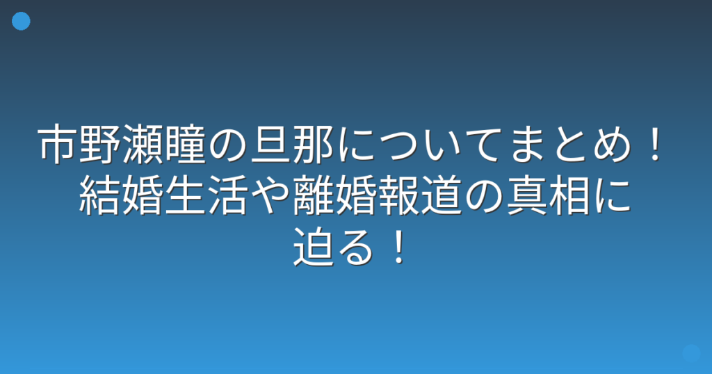 市野瀬瞳の旦那についてまとめ!結婚生活や離婚報道の真相に迫る!