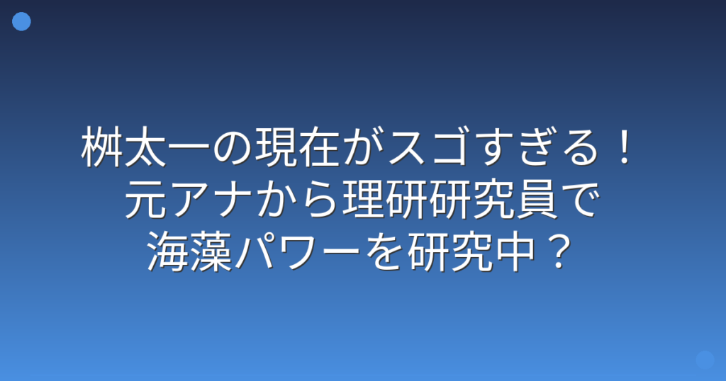 桝太一の現在がスゴすぎる!元アナから理研研究員で海藻パワーを研究中?