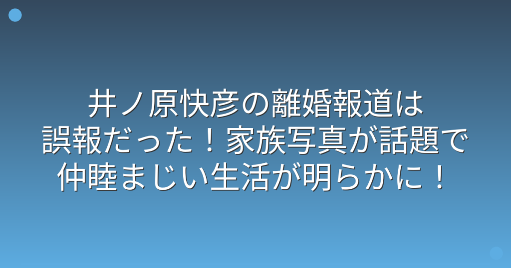 井ノ原快彦の離婚報道は誤報だった!家族写真が話題で仲睦まじい生活が明らかに!