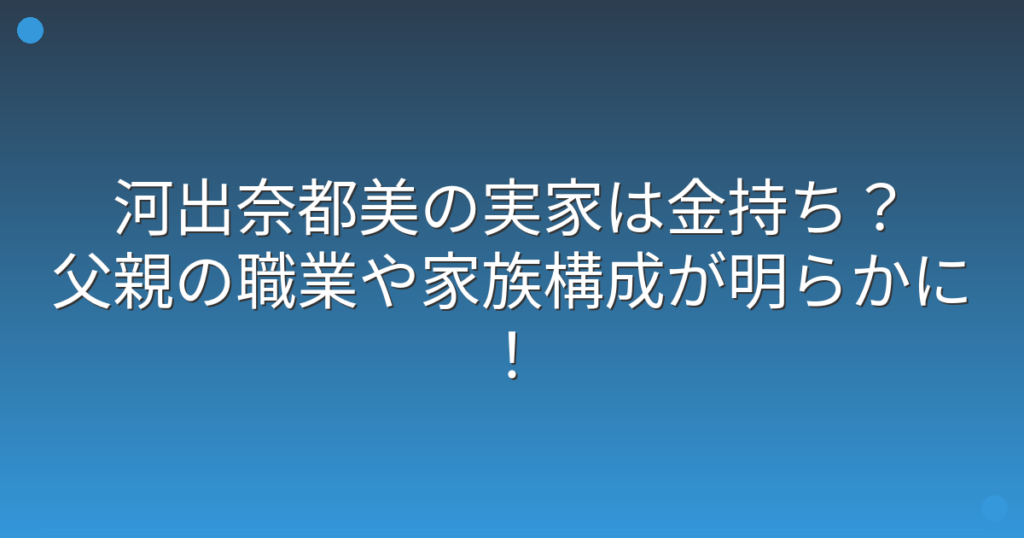 河出奈都美の実家は金持ち?父親の職業や家族構成が明らかに!
