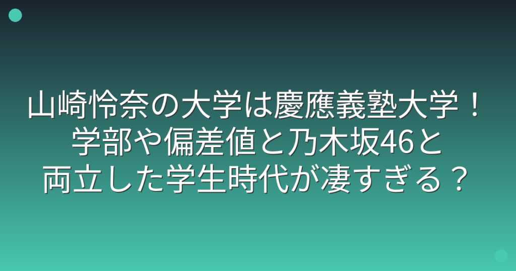 山崎怜奈の大学は慶應義塾大学!学部や偏差値と乃木坂46と両立した学生時代が凄すぎる?