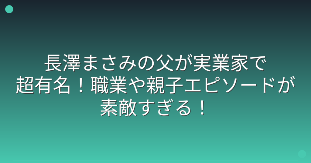 女優の長澤まさみさんの父親について、ネット上で大きな話題を呼んでいます。 実は長澤まさみさんの父親は、静岡県で実業家として活躍している方なのです。 そこで今回は、長澤まさみさんの父親について、職業や親子関係、そして興味深いエピソードまで詳... -