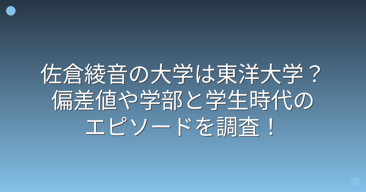 佐倉さんは東洋大学の文学部に進学し、偏差値52.5から60程度の大学で学んでいたことが分かりました。
