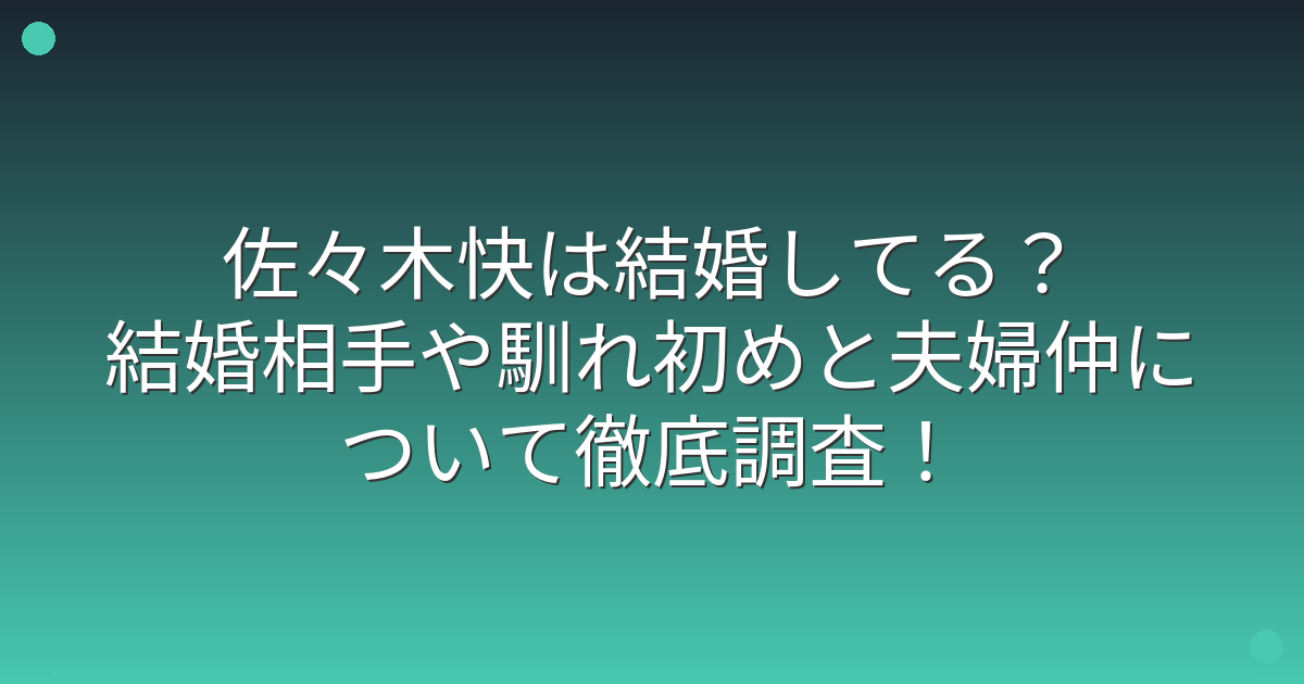 今回は、佐々木快さんの結婚に関する情報や、結婚相手、馴れ初め、結婚生活などについて調査してきました。