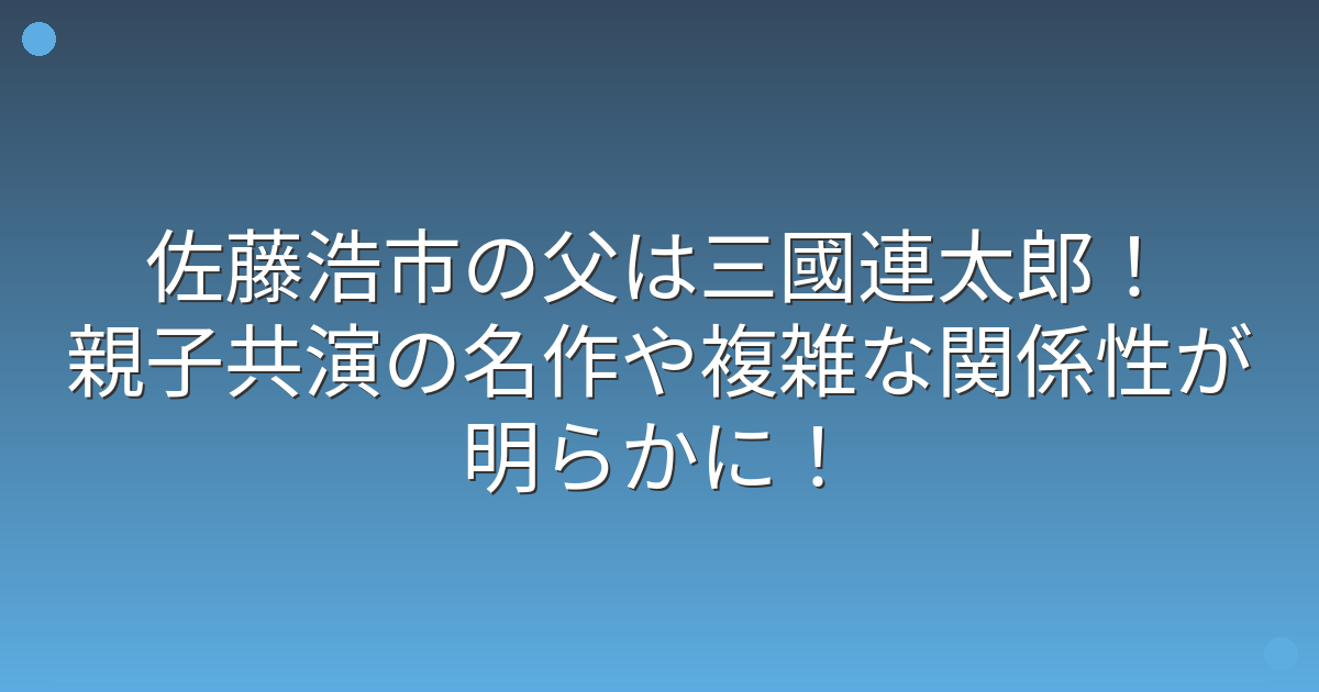佐藤浩市さんと父・三國連太郎さんの親子関係は、一般的な親子とは少し異なる複雑なものだったと言われています。