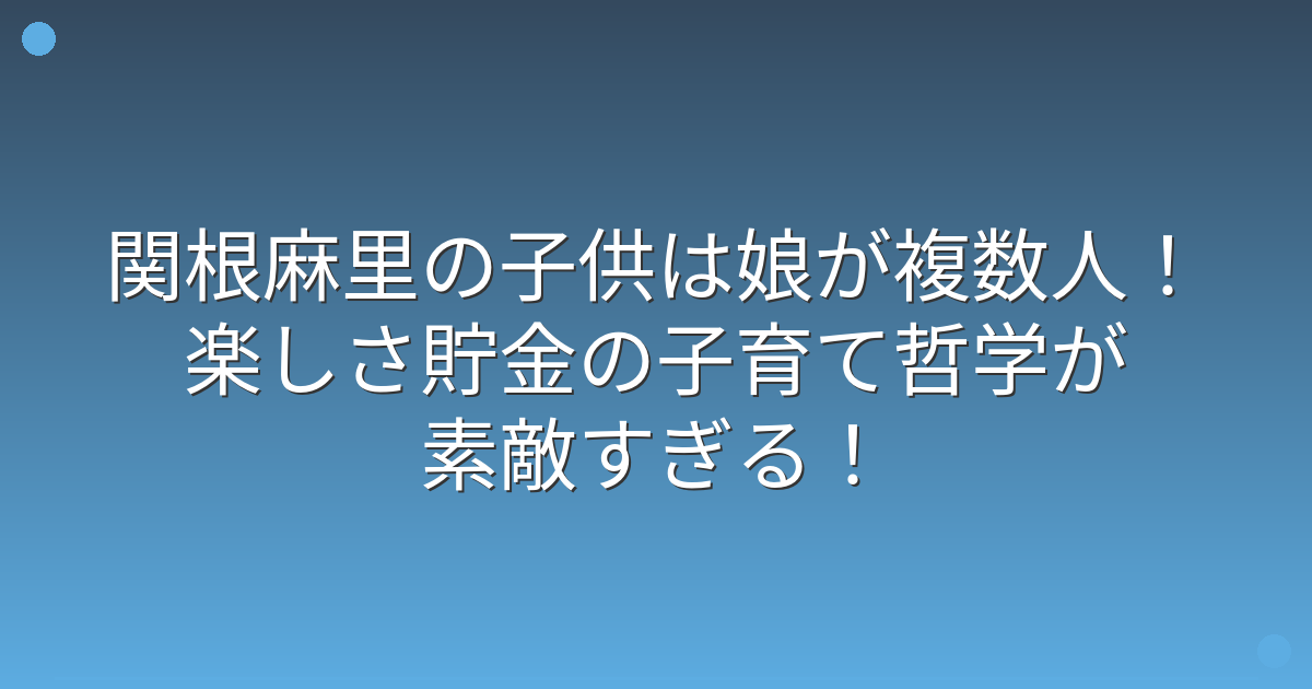 そこで今回は、関根麻里さんの子供の情報や、話題の「楽しさ貯金」という子育て哲学について詳しく見ていきましょう!