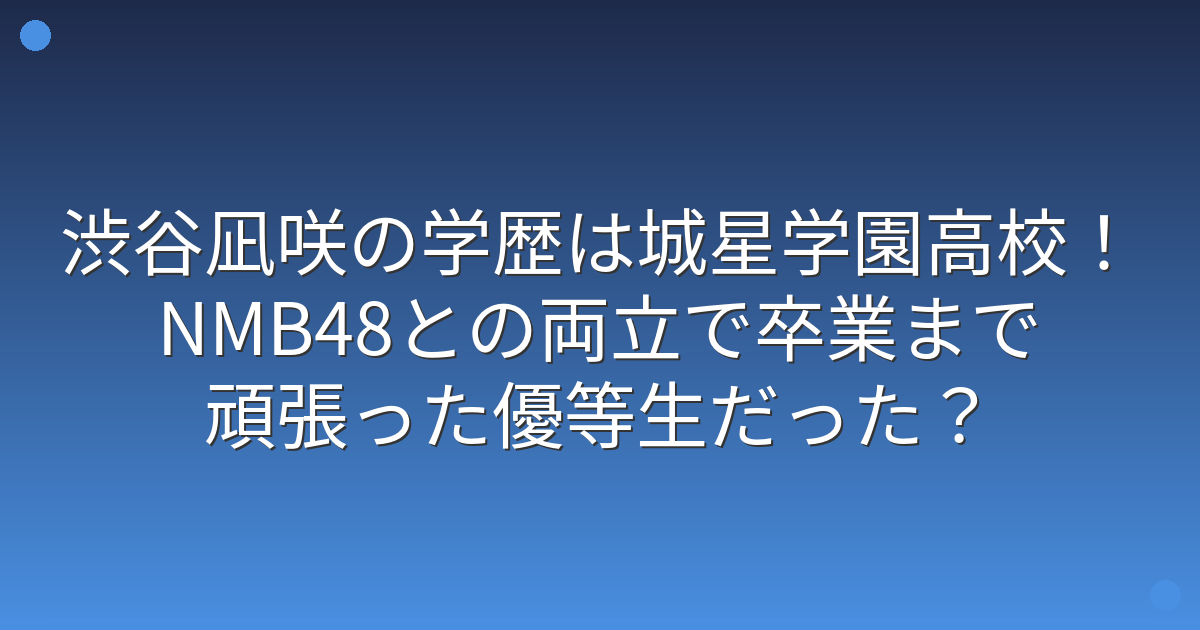 渋谷凪咲さんは城星学園高校(現・ヴェリタス城星学園高校)を卒業し、在学中からNMB48のメンバーとして活動していたことが分かりました。