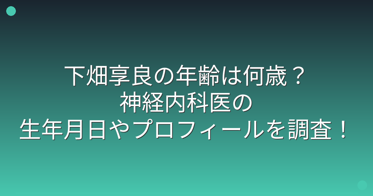 残念ながら、下畑享良さんの具体的な年齢や生年月日に関する公開情報は見つかりませんでしたが、神経内科医・研究者として非常に充実した活動をされていることが分かりました。