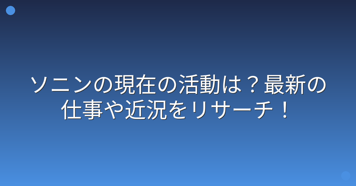 EE JUMPのメンバーとして活躍し、女優としても多くの作品に出演してきたソニンさんが、最近どのような活動をしているのか気になっている方も多いのではないでしょうか。