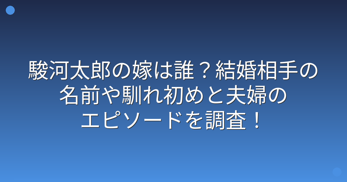駿河太郎さんの結婚相手や馴れ初めについても、具体的な情報は一切公開されていません。