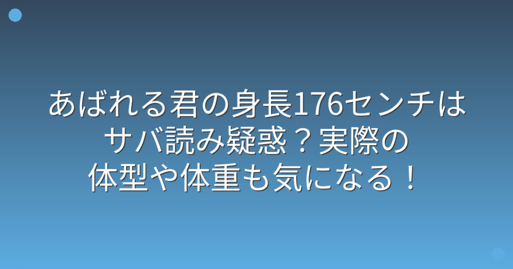 あばれる君の身長176センチはサバ読み疑惑?実際の体型や体重も気になる!