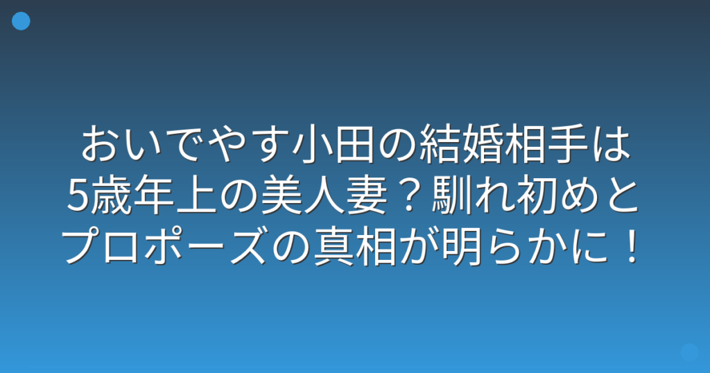 おいでやす小田の結婚相手は5歳年上の美人妻?馴れ初めとプロポーズの真相が明らかに!