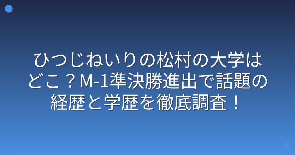 ひつじねいりの松村の大学はどこ?M-1準決勝進出で話題の経歴と学歴を徹底調査!