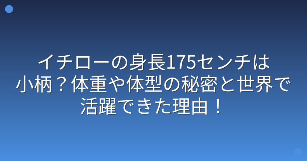 イチローの身長175センチは小柄?体重や体型の秘密と世界で活躍できた理由!