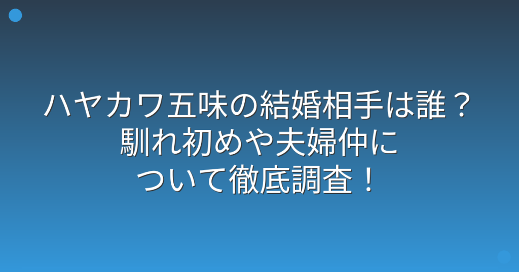 ハヤカワ五味の結婚相手は誰?馴れ初めや夫婦仲について徹底調査!