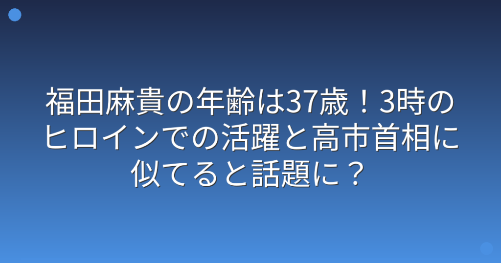 お笑いトリオ「3時のヒロイン」のメンバーとして活躍中の福田麻貴さんが、2025年現在も注目を集めていますね。 バラエティ番組やSNSでの活躍はもちろん、最近では高市早苗首相に似ているとネットで話題になっています。 そこで今回は、福田麻貴さの年齢や... -