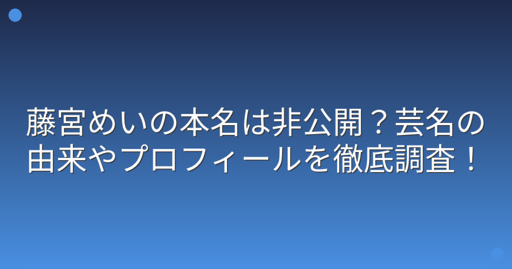 藤宮めいの本名は非公開?芸名の由来やプロフィールを徹底調査!